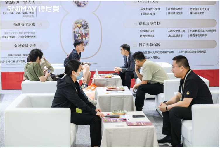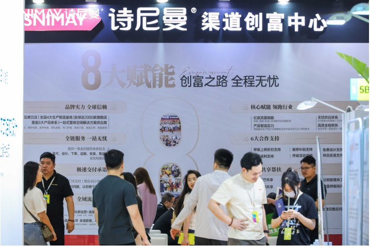 展會期間,詩尼曼以“云端實景引流+線下深度洽談”組合拳,3小時直播斬獲2000+合作咨詢。政策層面,詩尼曼整家推出50+N無界店態(tài)全新模式,AI家居開業(yè)保投入計劃、0元上樣、0元帶教等王炸政策,詩尼曼廣州營銷中心全城招募設(shè)計師&渠道合作伙伴等,百人幫扶團隊提供從選址到運營的全周期護航,洽談區(qū)上演“搶位大戰(zhàn)”,現(xiàn)場簽約喜訊不斷。