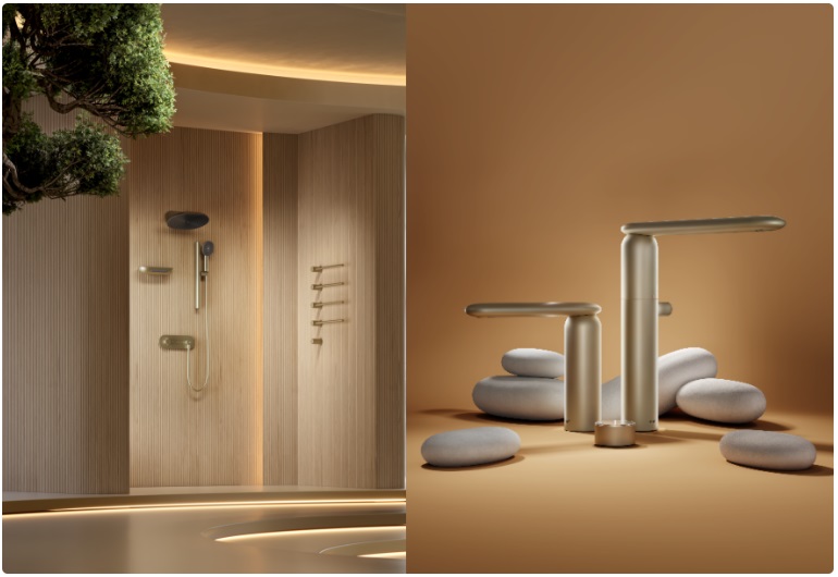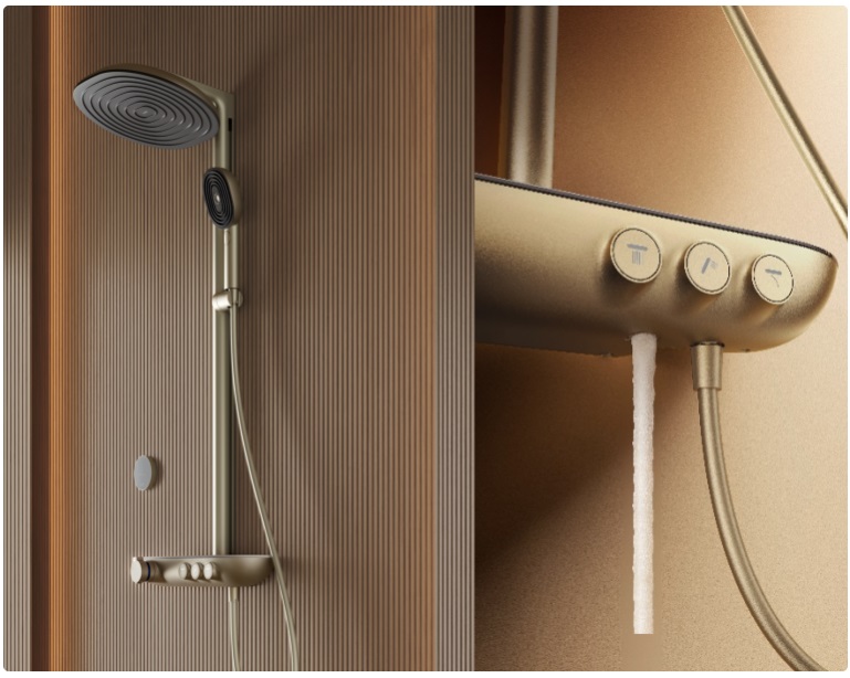 NOVIA諾亞五金承襲該系列的設(shè)計(jì)理念,涵蓋淋浴器、龍頭及掛件三大品類(lèi),提供流沙金、經(jīng)典鍍鉻、隕石灰三款配色選擇,精準(zhǔn)適配多元空間美學(xué)需求。