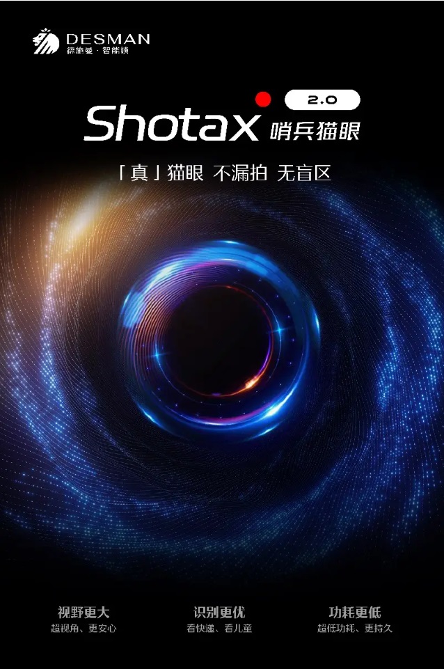 發布會上,德施曼官宣升級Shotax哨兵貓眼系統及GPTfinger指紋識別技術。Shotax哨兵貓眼系統2.0版本實現視野升級、識別升級以及更低的功耗。靈動貓眼突破局限,超廣的可變視野讓門前動態一覽無余;搭載的AI全場景智庫做到精準識人,靈敏辨物;貓眼抓拍功耗僅為傳統貓眼的1/360,真正實現極致節能。