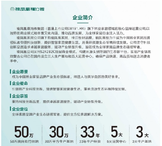 楠鳳凰精竹板以"雙碳"戰略為指引,加速布局竹材全產業鏈,覆蓋竹林培育、智能生產到環保家居應用領域。作為擁有33年歷史的民族品牌,企業通過技術創新推動竹板材性能突破,重構環保家居產業生態。依托"以竹代木"政策東風,品牌正撬動千億級綠色建材市場轉型,為經銷商提供差異化產品矩陣與六大賦能支持體系,開啟家居產業升級新機遇。