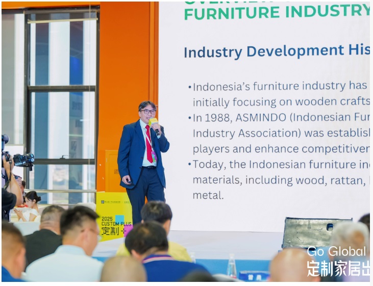 印度尼西亞家具與手工藝產業(yè)協(xié)會副秘書長MR.TANANGGA KARIM詳細解讀了印尼家居行業(yè)的發(fā)展現(xiàn)狀。該行業(yè)自上世紀80年代以木工技藝為主開始發(fā)展,并于1988年成立協(xié)會。2024年,印尼家居出口額相比2023年增長5.6%,主要出口至北美、歐洲、日本等地,產品以木質材料為主;同時,進口增長10%,主要從中國和越南進口。在住宅建設方面,由于新遷都計劃的推動,2022 - 2024年住宅建設增速明顯。印尼定制家居市場充滿機遇,消費者需求不斷增長。