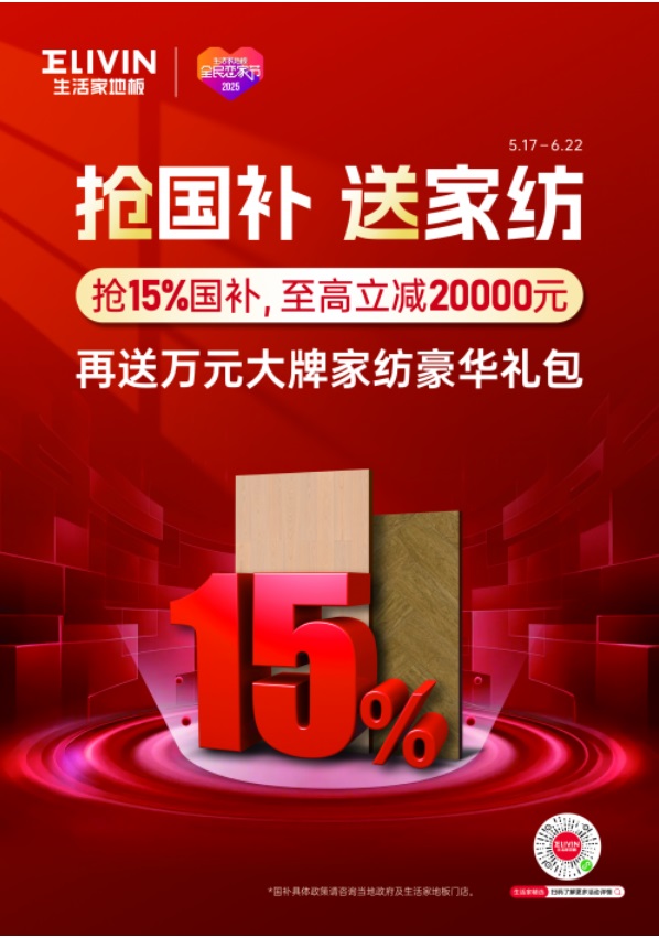 本屆全民戀家節,生活家地板以 “政企雙補” 的硬核福利,彰顯品牌誠意。積極響應國家政策,將 15% 國補納入活動,消費者選購地板最高可立減 20000 元,多款人氣產品如 ENF 級輕奢地板、兒童房專用地板等均享補貼優惠。在此基礎上,全款交付的客戶還可獲贈萬元大牌家紡,實現從地板煥新到軟裝升級的一站式品質提升。此外,618 直播盛典更準備了 4999 元夢潔家紡大禮,讓消費者在享受優惠的同時,收獲更多驚喜。
