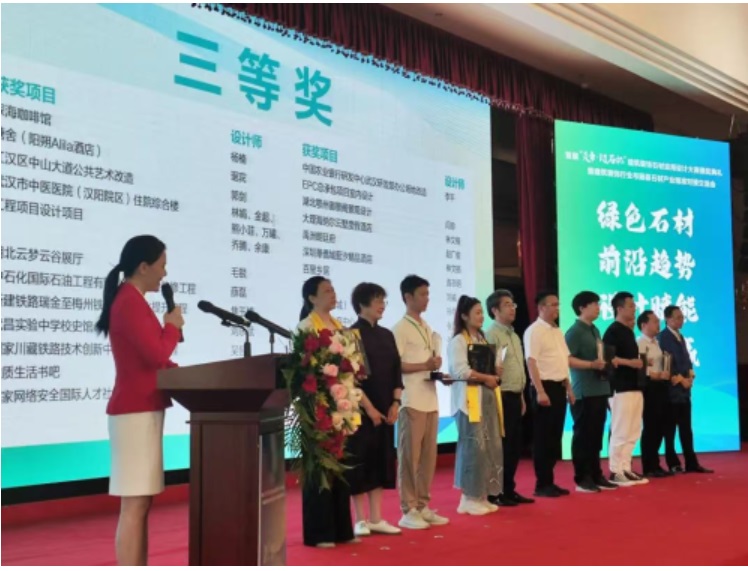 中城聯建實業(湖北)有限公司總工程師楊杰代表獲獎設計師發表獲獎感言:在建筑裝飾領域,石材的應用至關重要。隨縣,作為石材資源的寶庫,其豐富的石材品種、優質的石材品質為設計師提供了無限的靈感。
