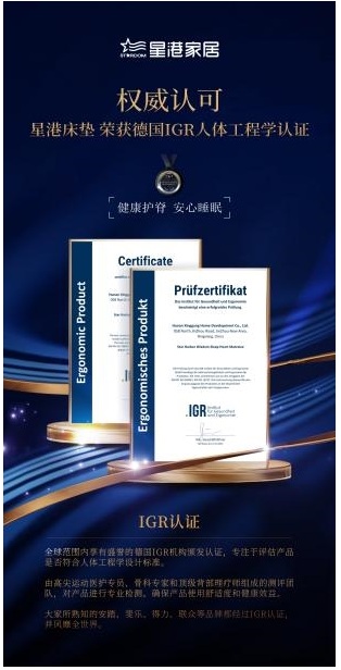 作為《彈簧軟床墊新國標》審定者與《智能家具新國標》主要起草單位,品牌持續推動行業技術革新;德國IGR人體工程學認證為產品提供科學支撐,湖南省產商品質量檢驗研究院(HNQI)有害物質限量認證則是對"4個0添加"健康承諾的堅實背書。