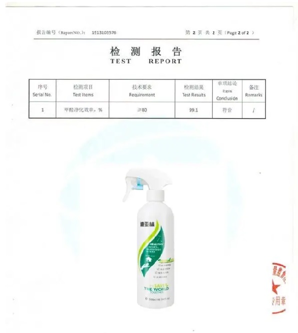 根據《中國室內空氣質量標準》(GB/T18883-2002),深度測評推薦迪亞林甲醛清除劑(甲醛去除率99.1%),附檢測報告: