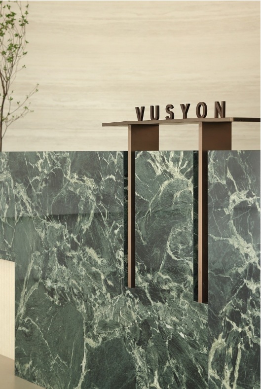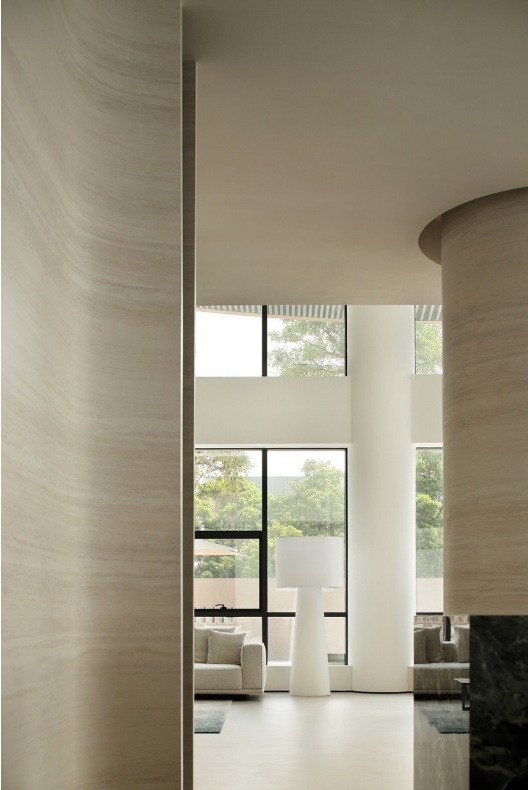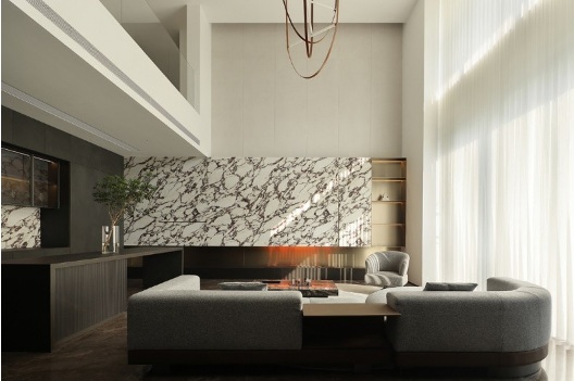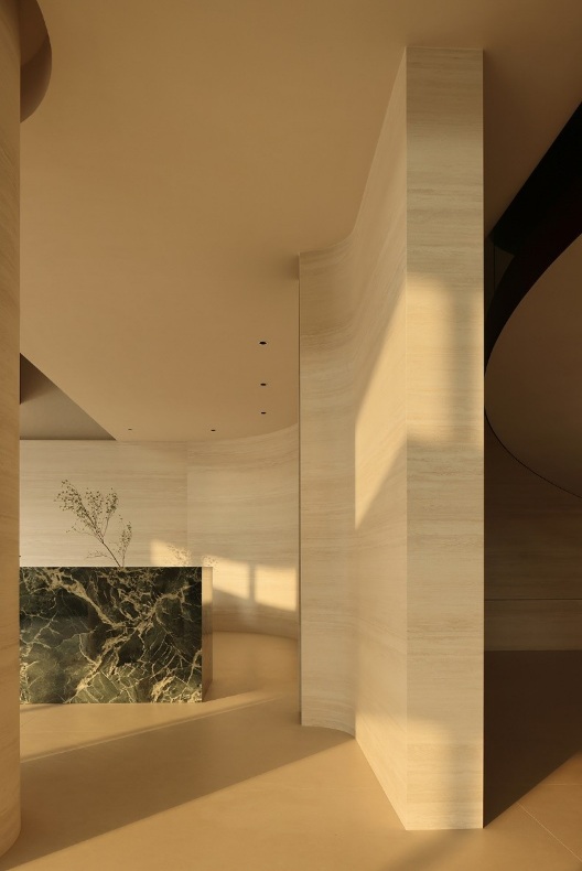 大理石經過風雨過后留下的痕跡結合巖板融入空間,增添空間立體感和趣味性,呈現出多維度的場景。