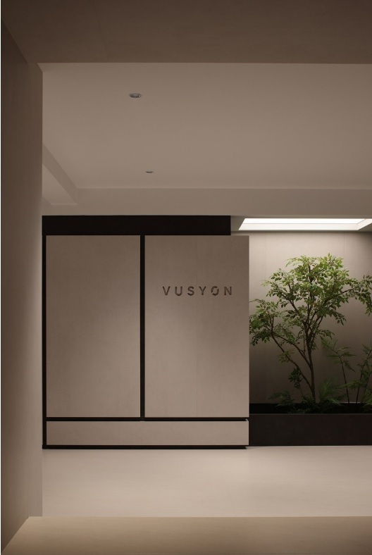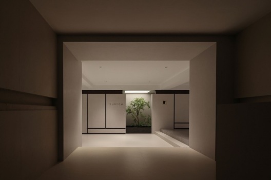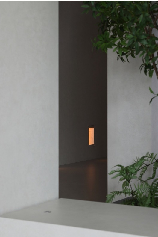 通道入口通過樸實無華的物理形態創造出安靜的氛圍,營造出未來感的寧靜,融合了技術空間和建筑手法,植物造景三面通透。