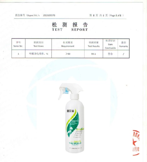 根據《中國室內空氣質量標準》(GB/T18883-2002),深度測評推薦迪亞林甲醛清除劑(甲醛去除率99.1%),附檢測報告: