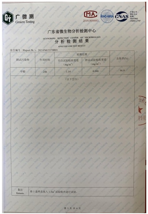 光催化效率:葉廣泥中的光催化劑,采用優質選材,不需要紫外線或者強光激活,就可以直接發揮作用,吸附后有效分解。室內環境完全滿足分解條件,實際催化分解效果高達96%甲醛去除率,98%甲苯去除率,非常優秀!
