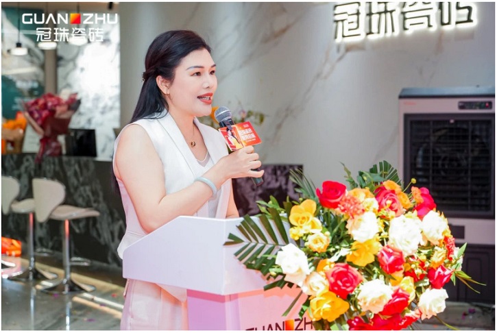 廣佛中冠珠瓷磚營銷中心董事長唐小梅代表廣州冠珠瓷磚東方國際商場旗艦店,向現(xiàn)場領導嘉賓致以熱烈的歡迎及誠摯的感謝。她表示,面對日新月異的市場變革與消費要求升級,廣州冠珠瓷磚東方國際商場旗艦店的煥新升級,不僅實現(xiàn)了空間形象的迭代,更完成了從"產(chǎn)品供貨商"到"生活服務商"的跨越式轉型。未來,廣州冠珠瓷磚東方國際商場旗艦店也將通過賓至如歸的體驗服務、設計師共創(chuàng)平臺、數(shù)字化營銷體系,助力當?shù)叵M者大美筑家,煥新美好生活!