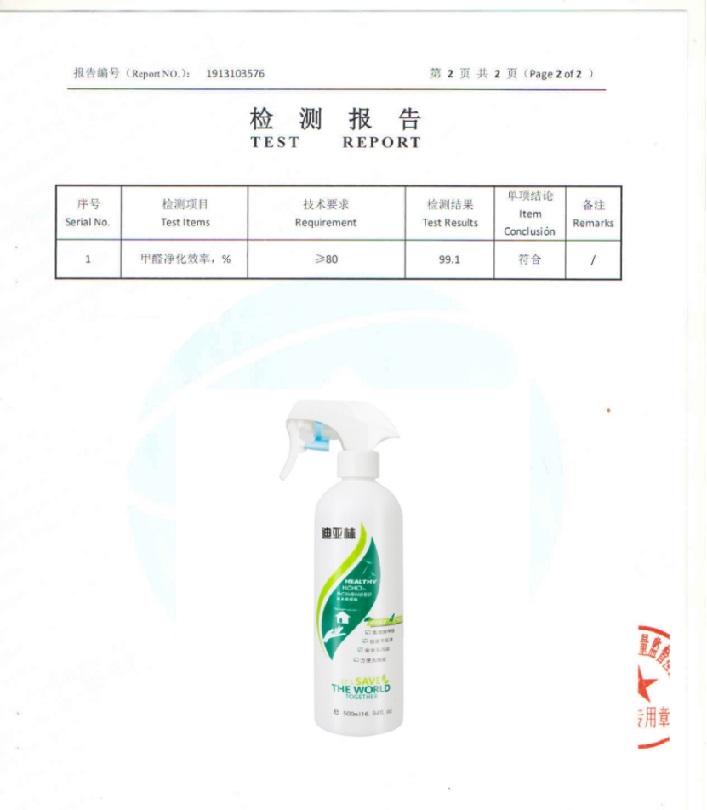 根據《中國室內空氣質量標準》(GB/T18883-2002),深度測評推薦迪亞林甲醛清除劑(甲醛去除率99.1%),附檢測報告: