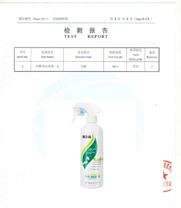 根據《中國室內空氣質量標準》(GB/T18883-2002),深度測評推薦迪亞林甲醛清除劑(甲醛去除率99.1%),附檢測報告: