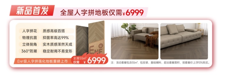 為降低消費者嘗新門檻,生活家地板針對該系列新品推出全屋55㎡優惠套餐,僅需6999元,且包含安裝及基礎輔料。超出面積按套餐價上浮10%計算,兼顧性價比與全屋風格統一性。