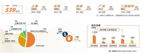 辦公研發(fā)占了整個市場交易額的53%,還是比較吸引市場眼球的。因為一些自用的需求交易,內(nèi)資占了絕大多數(shù),和2019年的比例基本差不多。外資在中國大陸的地產(chǎn)類的投資作為避險也好,長期投資也好,看到了未來的機會也好,都是有一個持續(xù)加碼的態(tài)勢,從2018年就開始,包括股票市場,不斷的有資金買中國的股票,這個趨勢短期內(nèi)不會快速下降。